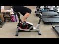A solid step-through (easy-mount) exercise bike with 8 manual levels of magnetic resistance, credible 5kg flywheel, contact heart-rate measurement, tablet holder, and a 120kg user rating.